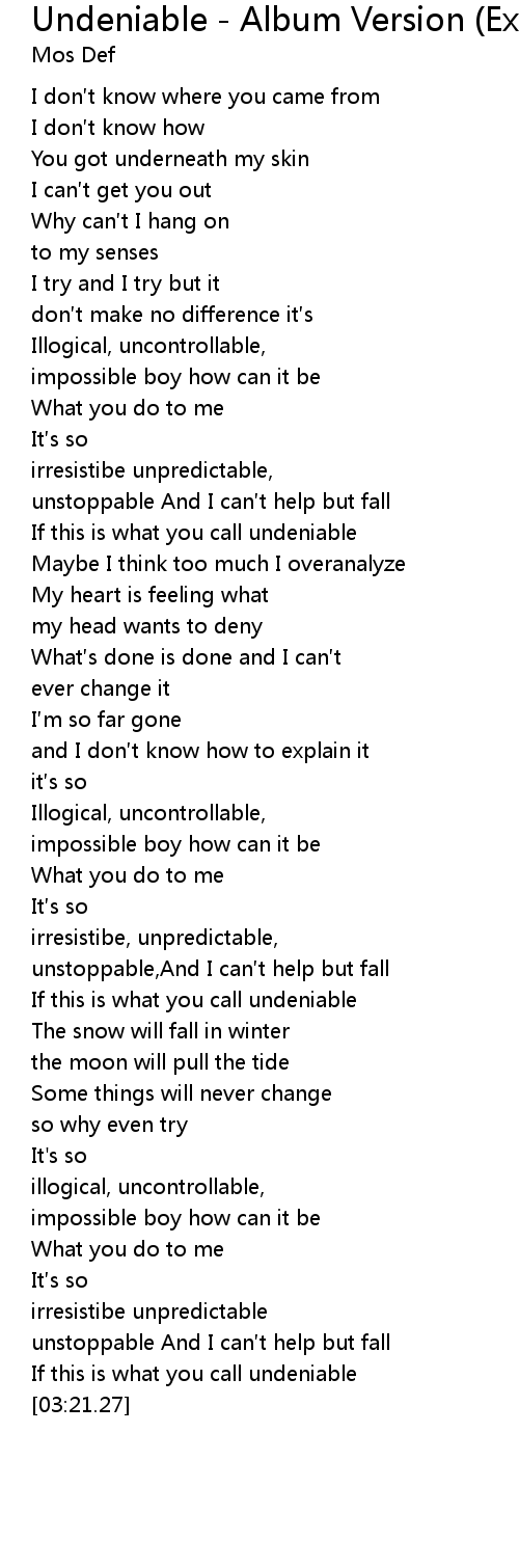 | [02:04.62] | If this is what you call undeniable |