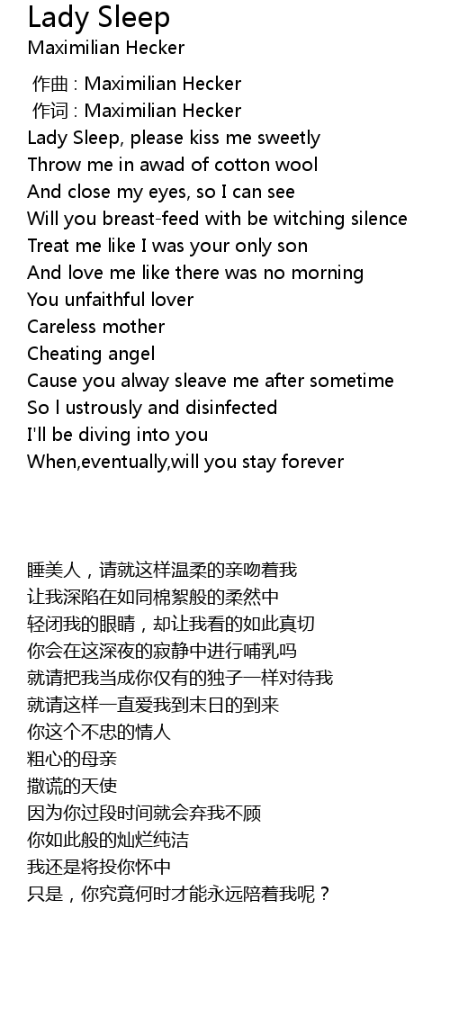 | [00:38.300] | Lady Sleep, please kiss me sweetly |
