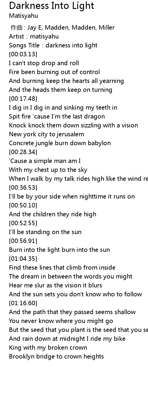 | [00:01.52] | Songs Title:darkness into light |