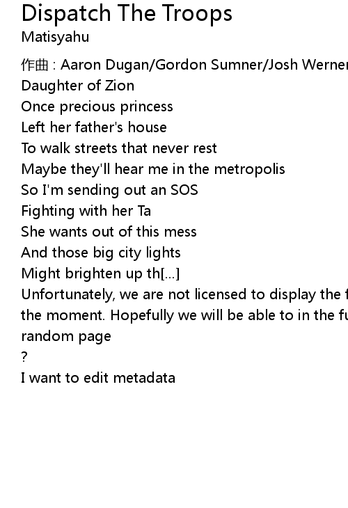 | Unfortunately, we are not licensed to display the full lyrics for this song at the moment. Hopefully we will be able to in the future. Until then, how about a | |