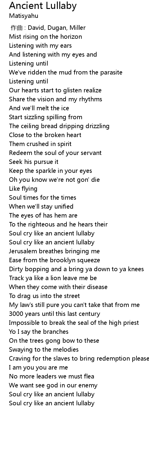 | [00:43.26] | Soul cry like an ancient lullaby |