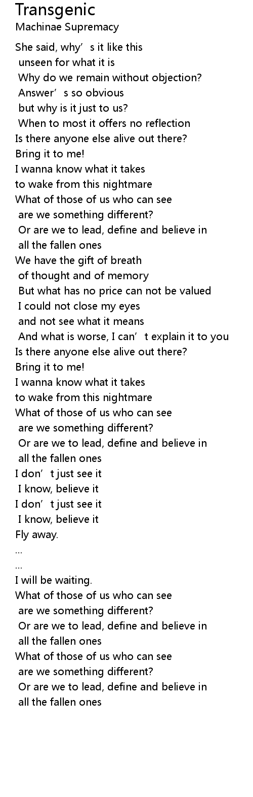 | Song | Transgenic |