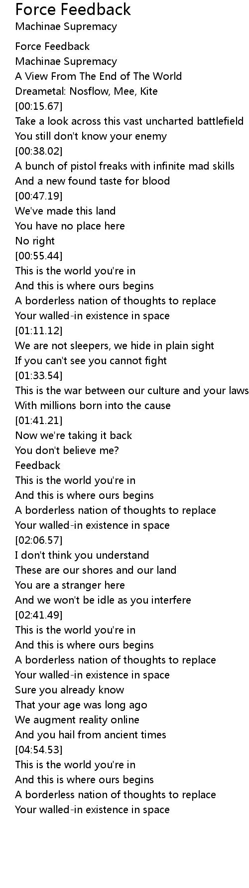 Force Feedback Lyrics