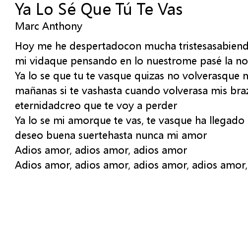 | Ya lo se que tu te vasque quizas no volverasque muy tristes hoy seranmis ma anas si te vashasta cuando volverasa mis brazos no lo sesera un eternidadcreo que te voy a perder | |