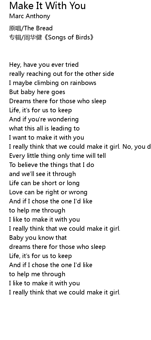 | Song | Make It With You |