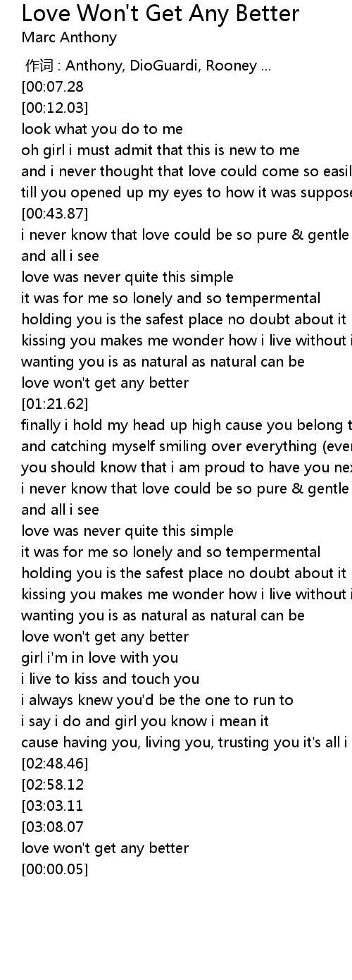 | [03:34.24][00:07.28] | marc anthony : love won't get any better |
