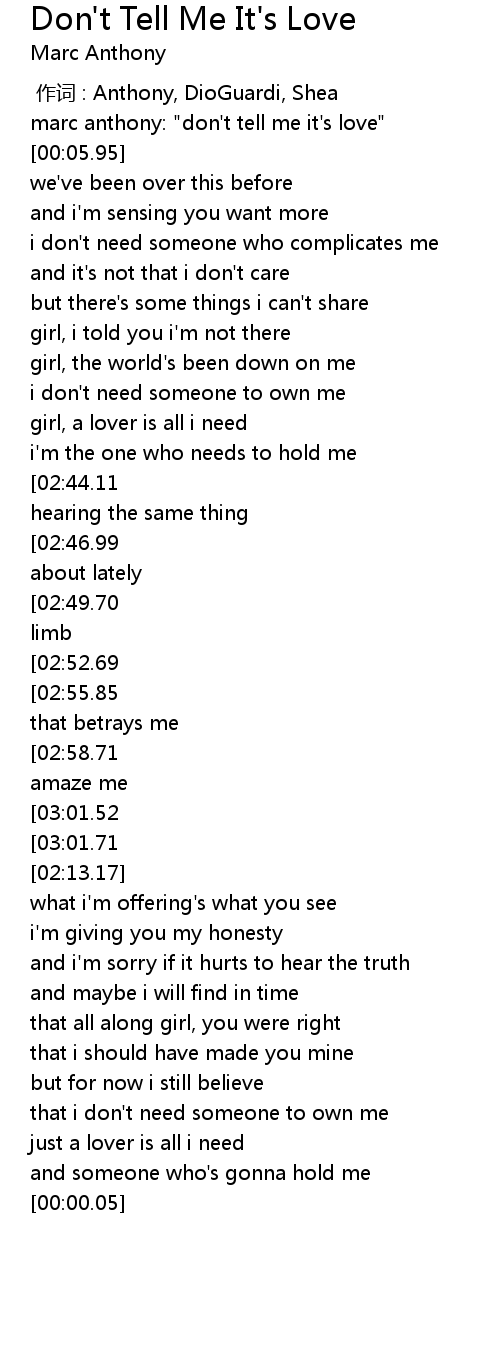 | [00:03.41] | marc anthony: " don' t tell me it' s love" |