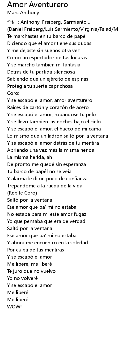 | 作词 : Anthony, Freiberg, Sarmiento ... | |