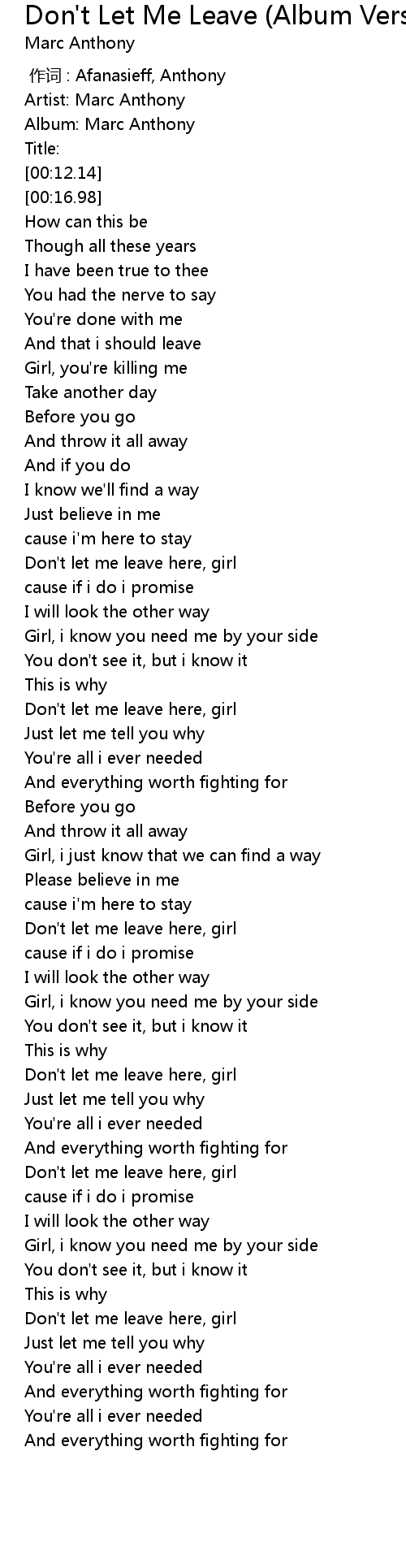 | [03:23.48] | Don't let me leave here, girl |