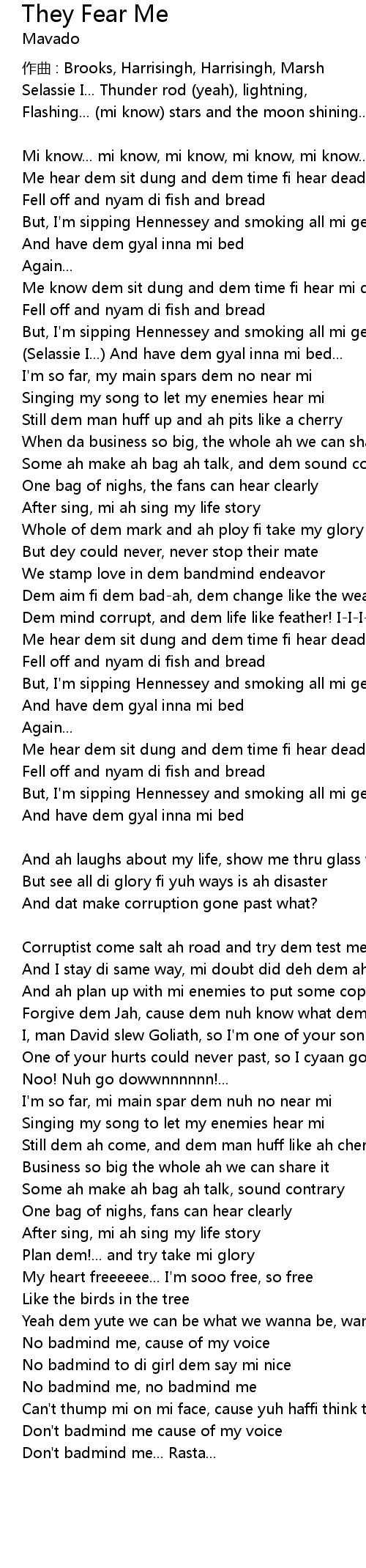 | Me hear dem sit dung and dem time fi hear dead, time fi hear mi dead | |