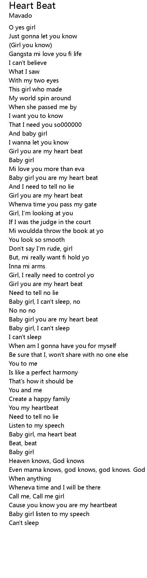 Girl you are my heart beat |