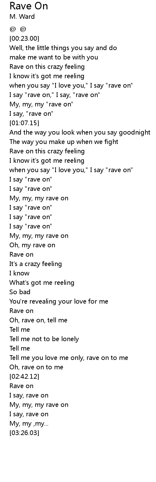 | [00:42.21] | when you say "I love you," I say "rave on" |