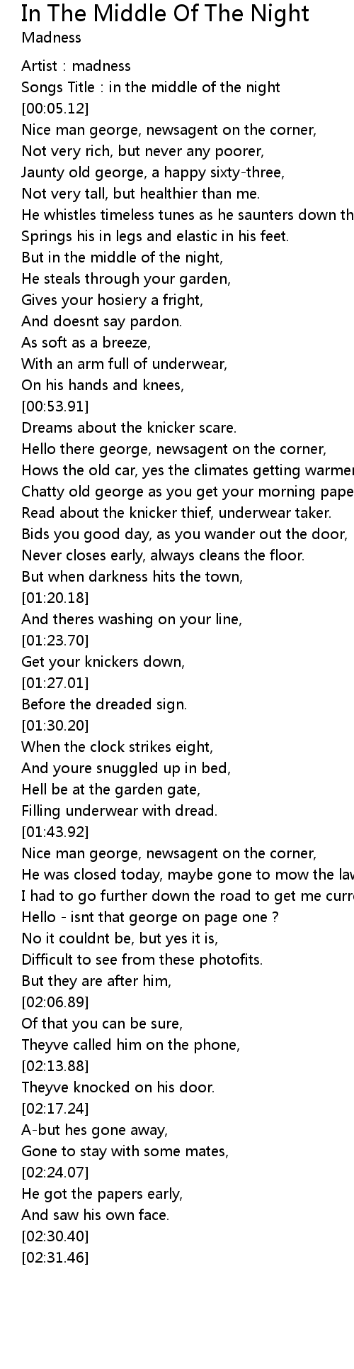 | [01:07.90] | Read about the knicker thief, underwear taker. |