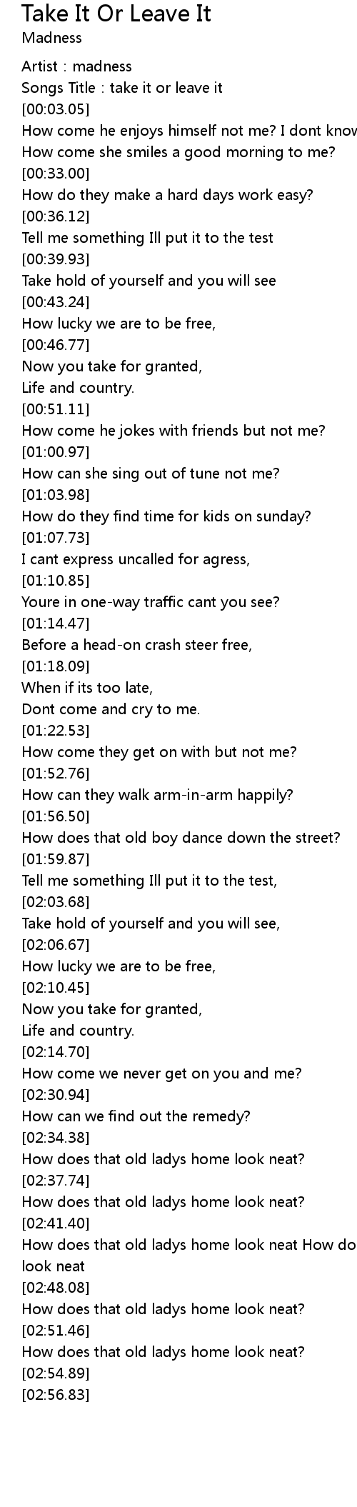 | [02:42.15] | How does that old ladys home look neat How does that old ladys home look neat |