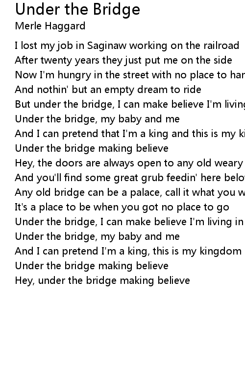 Hey, under the bridge making believe |