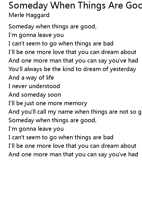 Someday when things are good, |