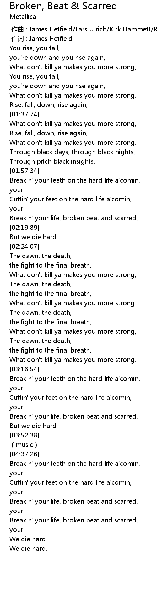 | [00:00.00] | 作曲 : James Hetfield/Lars Ulrich/Kirk Hammett/Robert Trujillo |