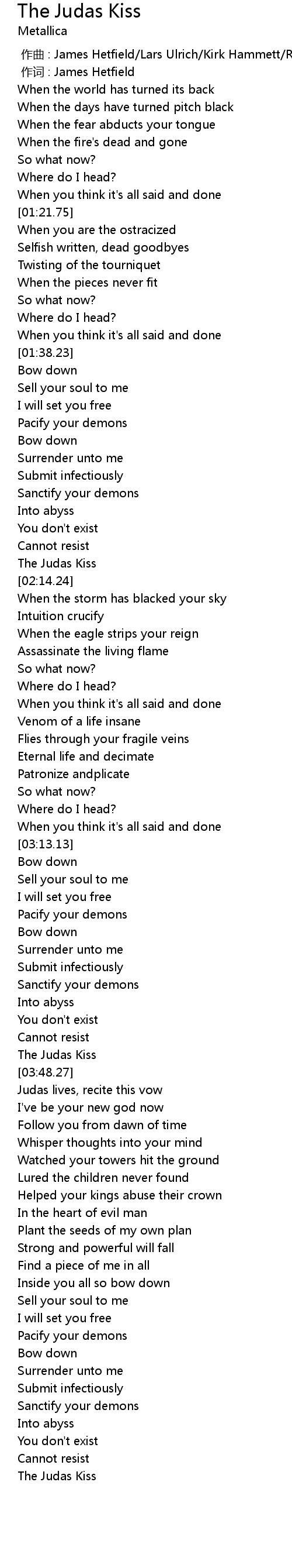 | [00:00.00] | 作曲 : James Hetfield/Lars Ulrich/Kirk Hammett/Robert Trujillo |