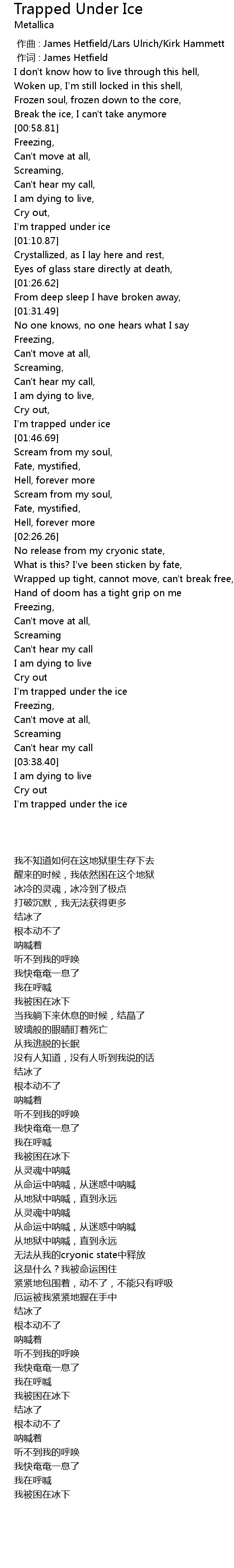 | [00:00.00] | 作曲 : James Hetfield/Lars Ulrich/Kirk Hammett |