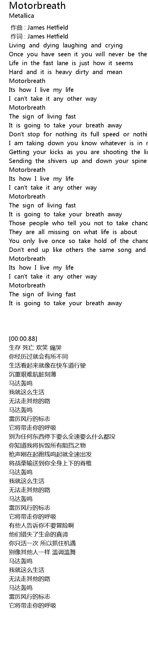 | [00:01.00] | 作词 : James Hetfield |