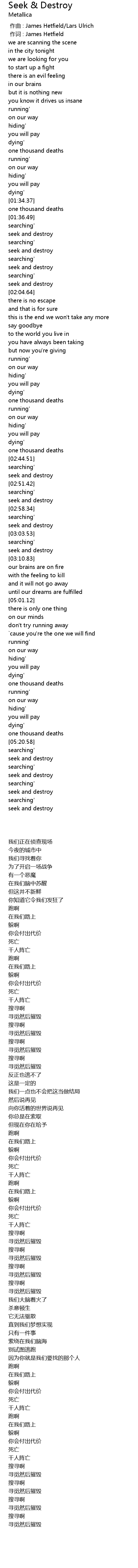 | [00:00.00] | 作曲 : James Hetfield/Lars Ulrich |