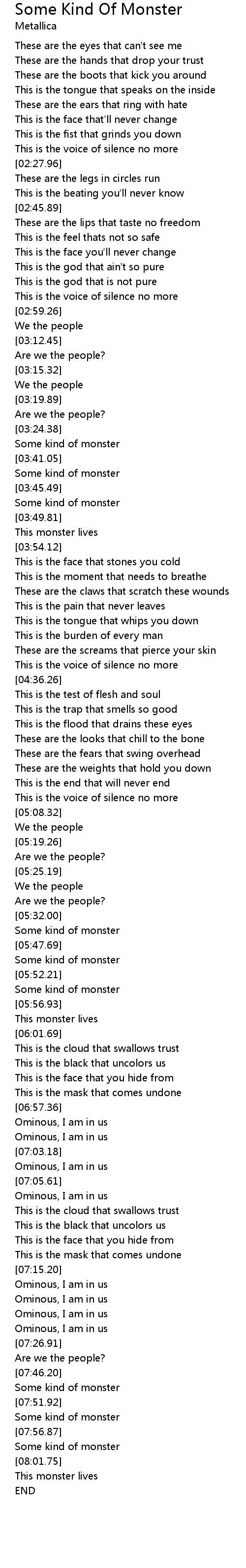 | [08:00.06] | Some kind of monster |