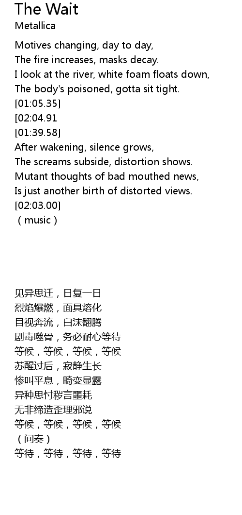 | [04:19.06][02:04.91][01:05.74] | The wait, the wait, the wait, the wait. |