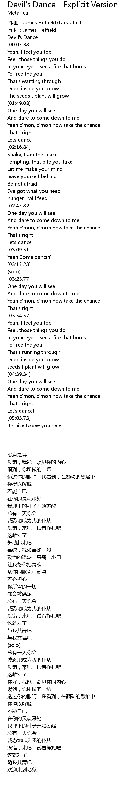 | [00:00.17] | 作词 : James Hetfield |