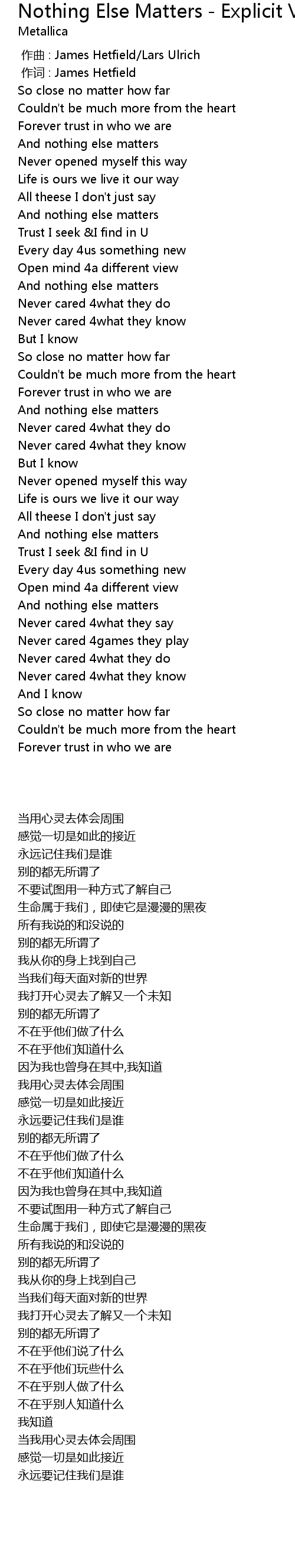 | [00:01.00] | 作词 : James Hetfield |
