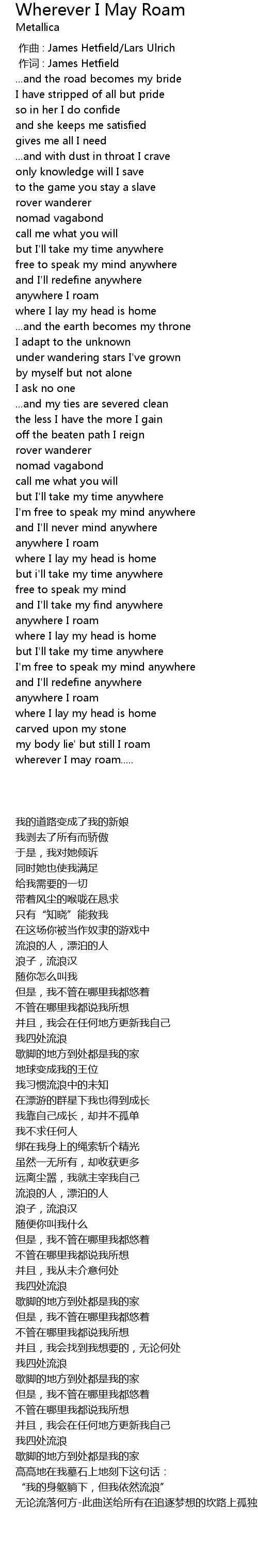 | [00:01.00] | 作词 : James Hetfield |