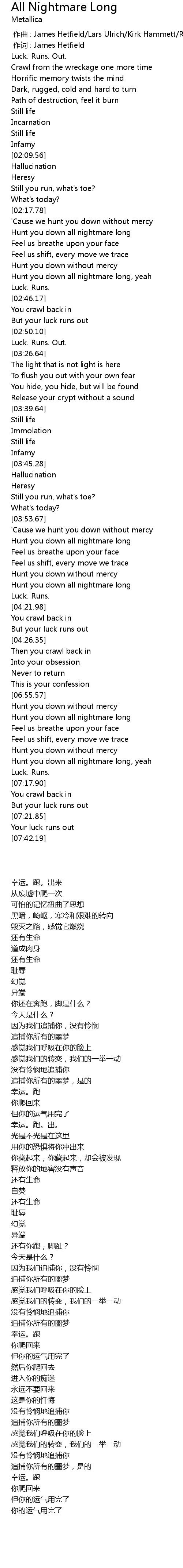 | [00:00.00] | 作曲 : James Hetfield/Lars Ulrich/Kirk Hammett/Robert Trujillo |