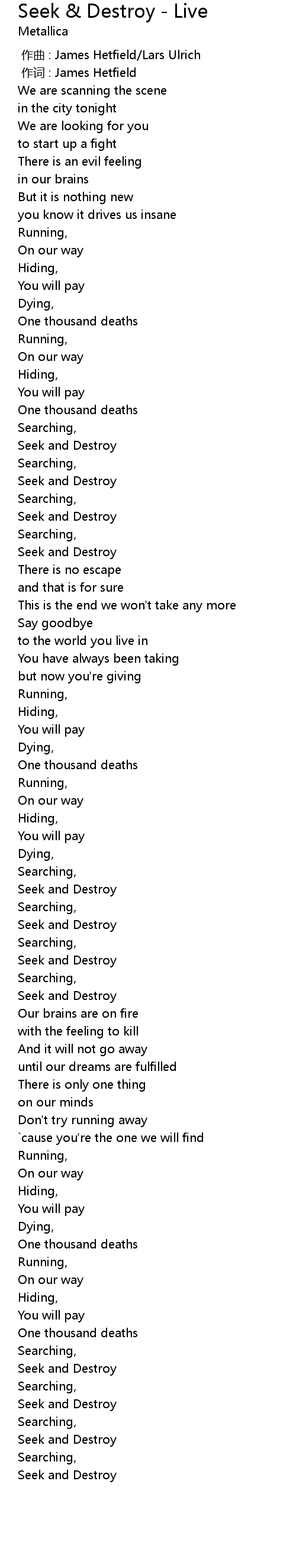 | [02:02.00] | Seek and Destroy |