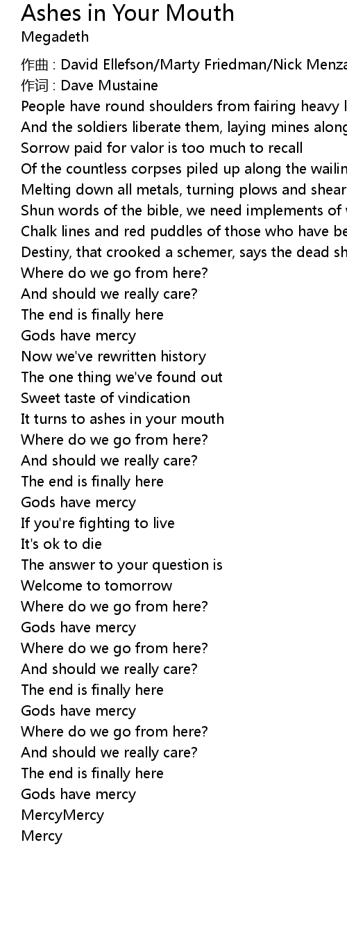 | Song | Ashes in Your Mouth |