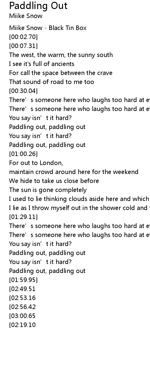 | [00:49.68] | Paddling out, paddling out |