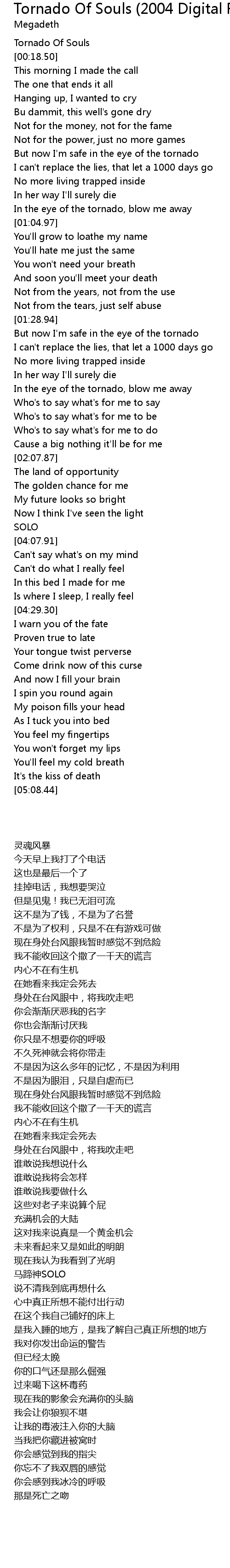Tornado Of Souls (2004 Digital Remaster) Lyrics