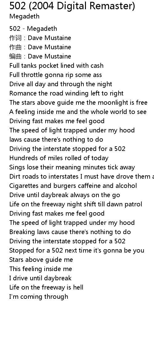 | [00:03] | zuò qǔ: Dave Mustaine |