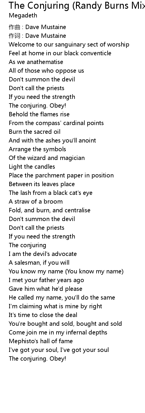 | Song | The Conjuring (Randy Burns Mix) |