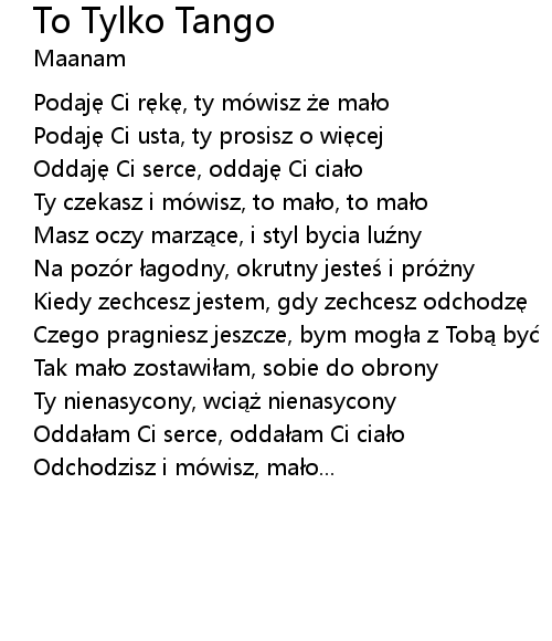 | Song | To Tylko Tango |