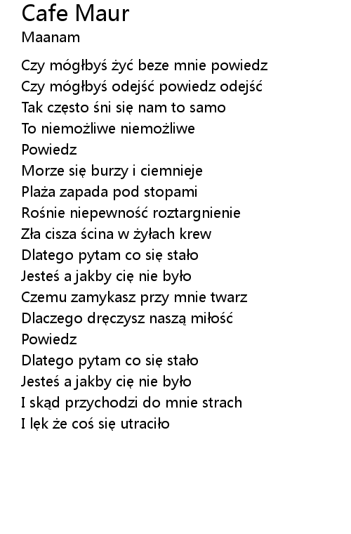 | Czy mógłbyś żyć beze mnie powiedz | |