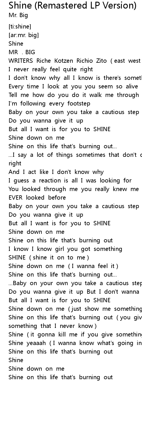 | [03:07.30] | Shine (it gonna kill me if you give something away) |