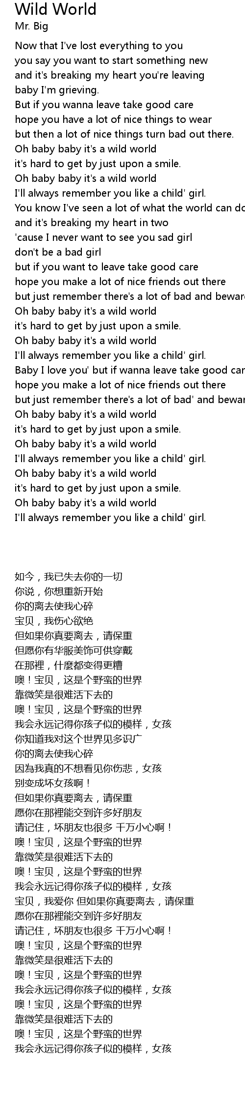 Oh baby baby it's a wild world |
