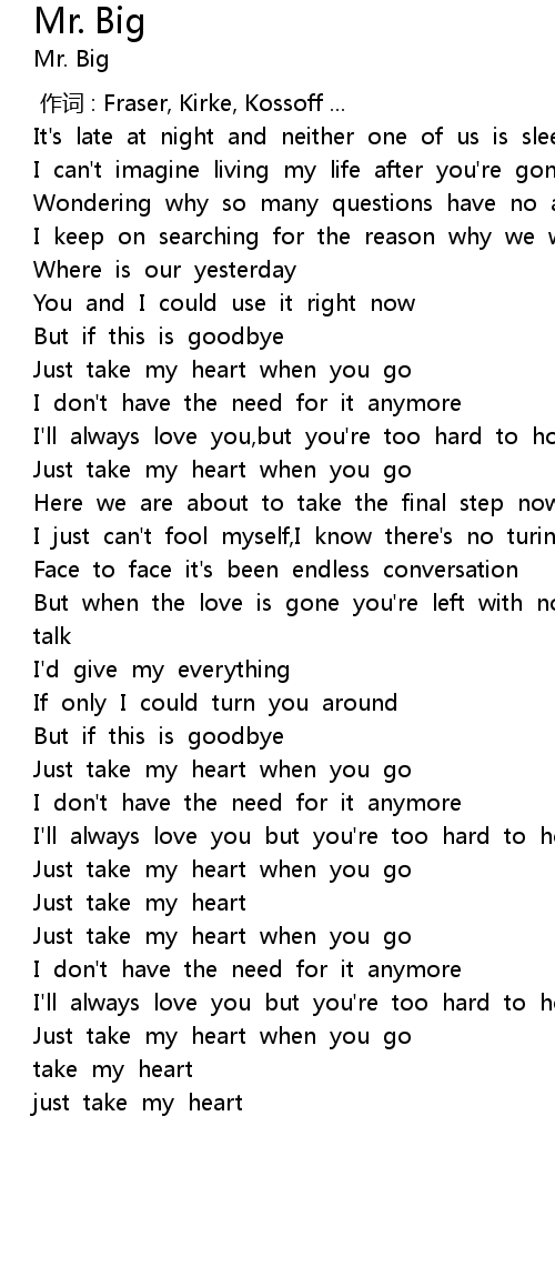 | [01:46.584] | Just take my heart when you go |