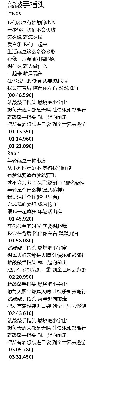 | [02:09.290] | 就敲敲手指头 就一起向前走 |
