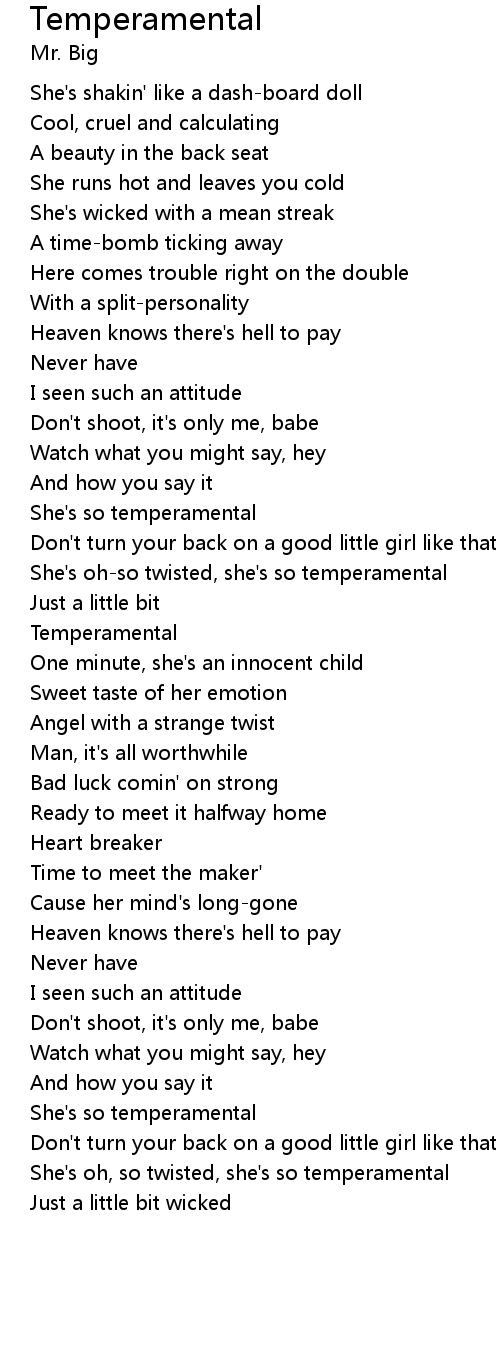 She's oh-so twisted, she's so temperamental |