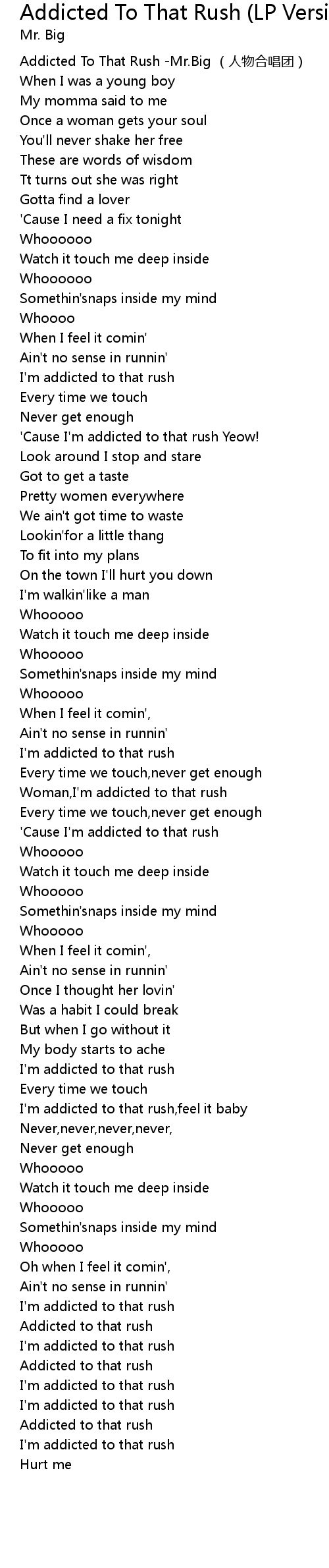 | [00:00.00] | Addicted To That Rush Mr. Big ren wu he chang tuan |