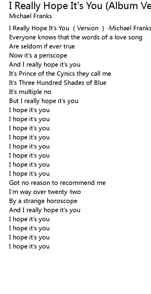| [00:00.00] | I Really Hope It' s You Version Michael Franks |