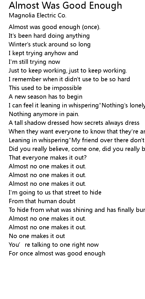 | For once almost was good enough |
