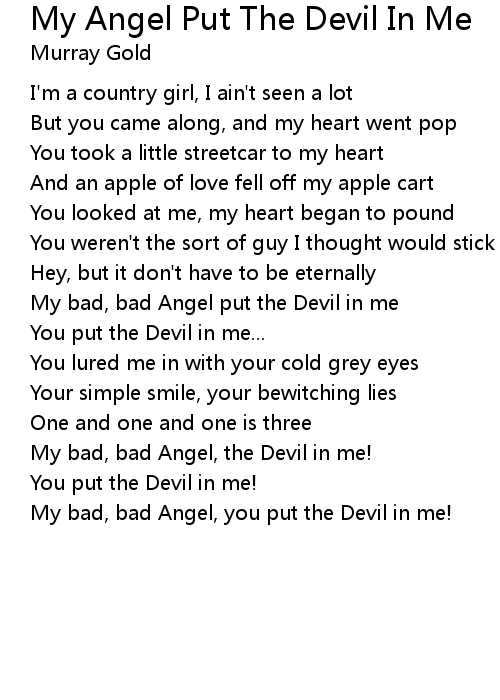 My bad, bad Angel put the Devil in me |