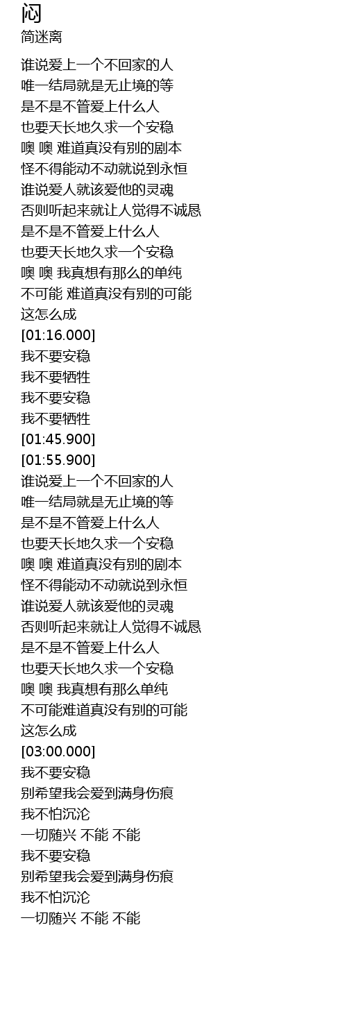 | [01:32.100] | 我不要安稳 |