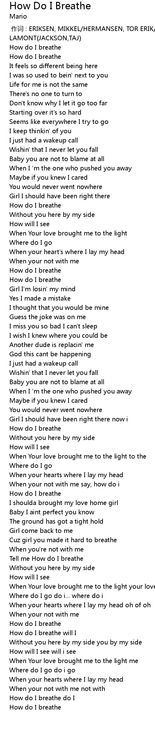 | [00:14.90] | How do I breathe |